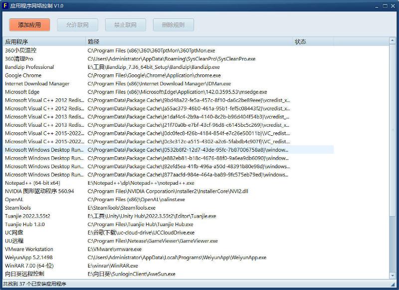 软件介绍 单文件应用程序网络控制工具引用系统防火墙控制程序的网络状态 用管理员权限运行 软件截图